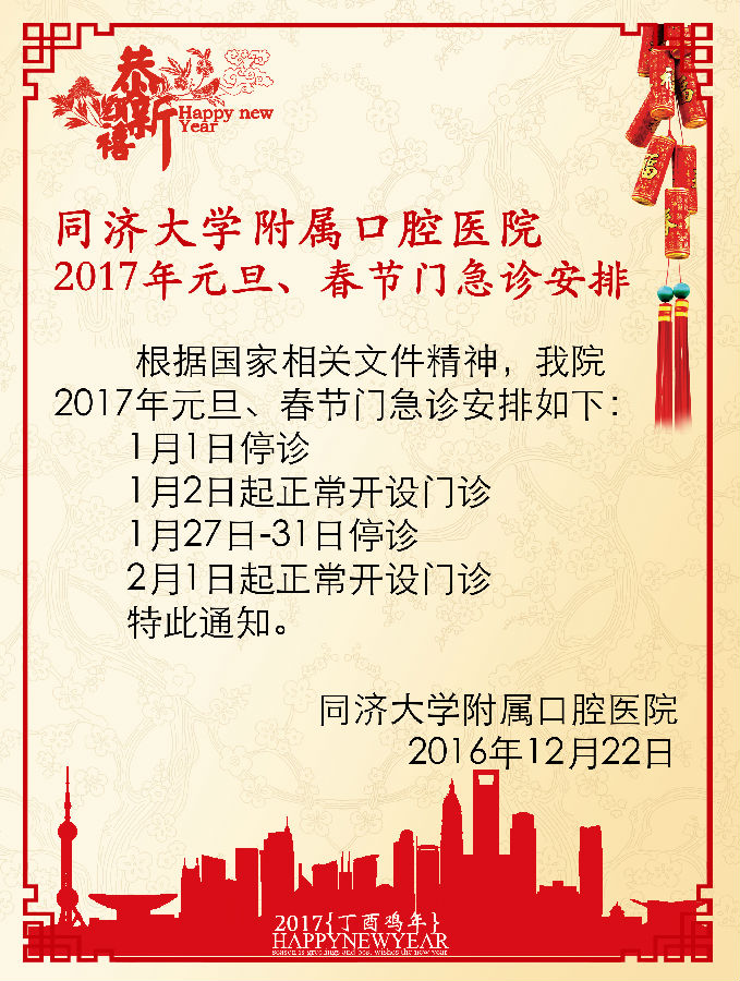 2017元旦、春节门急诊安排