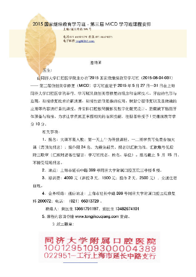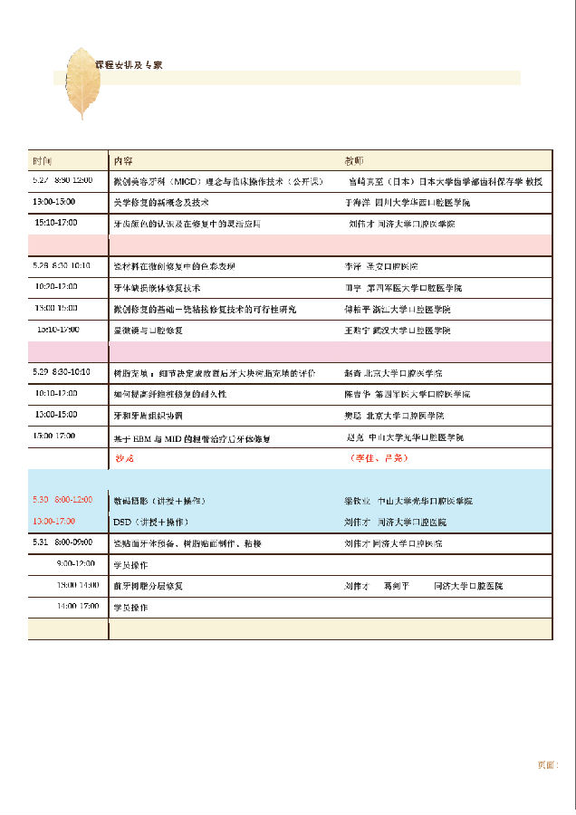 由suncitygroup太阳集团官方网站主办的“2015 国家级继续教育学习班(2015-08-04-031)——第三届微创美学修复(MICD)学习班”定于2015 年5 月27 日—31日在上海suncitygroup太阳集团官方网站举行。学习班从微创美容修复的理念和临床技术、牙齿的色彩与重现、粘接修复技术的新进展、粘接性瓷修复体的应用、树脂分层修复以及显微镜的应用等内容进行系统讲授,并安排口腔数码摄影及数字化微笑设计、显微镜下贴面牙体预备与粘接,力求让学员真正掌握相关的临床技能。