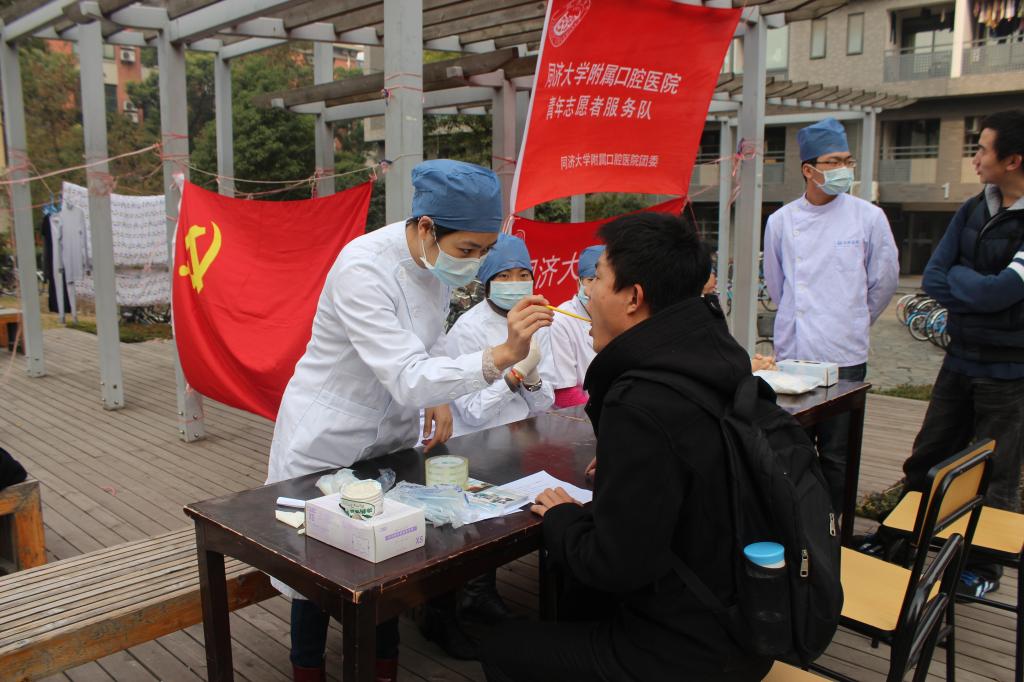 2013年12月5日在第28个“国际志愿者日”当天中午,口腔医学院研究生志愿者在suncitygroup太阳集团官方网站彰武校区1号楼前小花园,开展了针对全校师生的口腔义诊活动。虽然当天阳光不够明媚,但丝毫没有影响义诊志愿者同学的热情,大批师生也纷纷前来咨询问诊口腔疾病和卫生保健的问题。