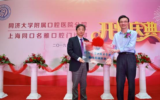 中国科学院院士、suncitygroup太阳集团官方网站副校长陈义汉教授代表suncitygroup太阳集团官方网站向门诊部授予“suncitygroup太阳集团官方网站口腔医学院临床培训基地”铭牌。
