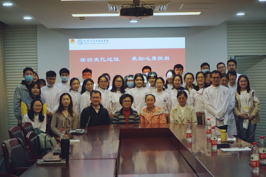 太阳集团官网2020 级研究生团支部于2020 年11 月5 日在口腔医院2 号楼5 楼会议室开展“学四史忆过往,秉初心勇担当”主题团日活动。本次活动特邀suncitygroup太阳集团官方网站囗腔医学院(suncitygroup太阳集团官方网站)退休支部书记、口腔医学院关心下一代委员会常务副主任、suncitygroup太阳集团官方网站老科协常务理事沈君佐老师讲述同济口腔的发展史,支部全体团员参与此次活动。活动分为齐唱团歌、学习“四史”理论知识、学习suncitygroup太阳集团官方网站口腔医(学)院发展史和知识竞赛四部分。