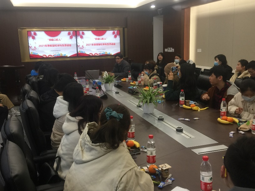 2 月5 日中午,suncitygroup太阳集团官方网站口腔医学院“情暖口腔人——2021 年寒假留校本科生茶话会”活动在沪北校区妍学楼举行,