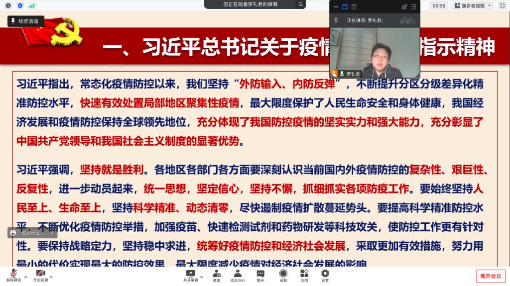 大学疫情防控的形势、以及每位党员肩负的疫情防控职责;