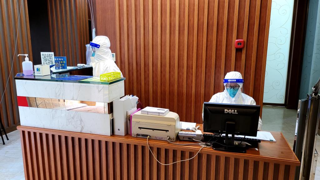 急诊医护人员每日进行健康报告及核酸检测,全部穿着防护服,佩戴 N95 口罩、防护