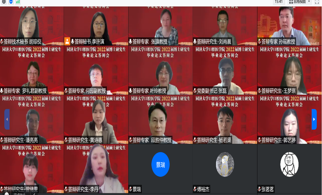 口腔内科学 2022 届博士、硕士研究生学位论文答辩会于 6 月 30 日在腾讯