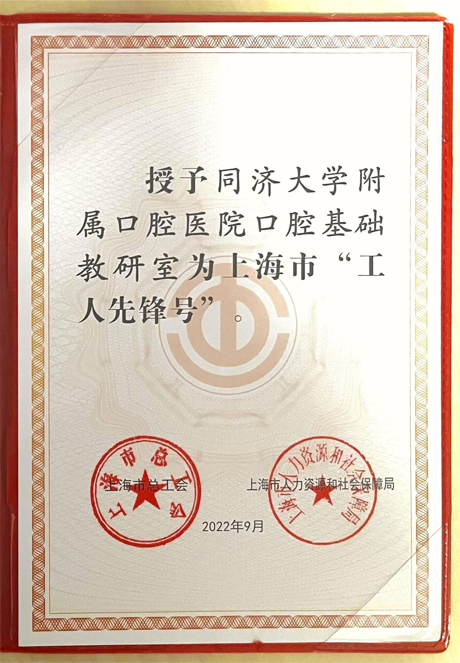 9 月 27 日,上海市“五一劳动奖章”表彰大会在上海市展览中心隆重举行,太阳集团官网口腔基础教研室、青年护理突击队荣获“上海市工人先锋号”称号。