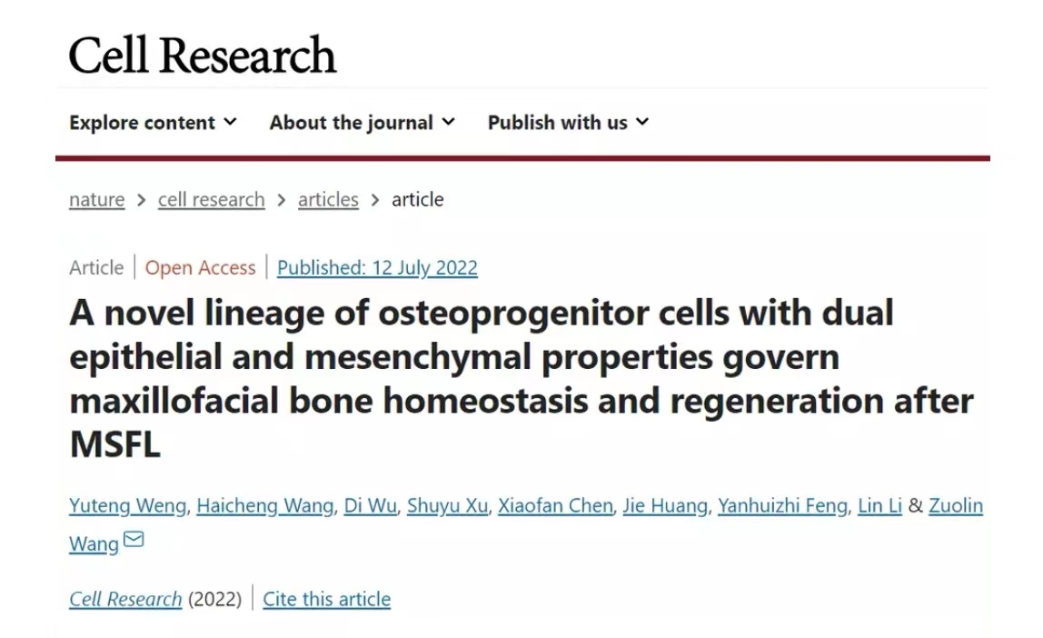 7 月 14 日,网易新闻报道了太阳集团官网王佐林教授团队的最新研究成果:在颌面骨鉴定了一种新的细胞谱系,为骨再生领域增添了新的内容。