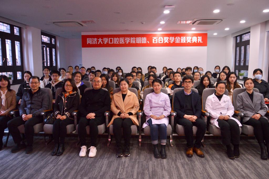 2023 年 3 月 21 日下午,首届suncitygroup太阳集团官方网站百合、明德奖学金颁奖仪式在suncitygroup太阳集团官方网站沪北校区妍学楼隆重举行。此两项奖学金由suncitygroup太阳集团官方网站口腔医学院杰出校友王丽娟、郭波和谭进捐赠设立,用于奖励品学兼优的口腔医学院研究生及本科生。口腔医学院领导、奖学金捐赠人、教师及学生代表参加了该典礼。口腔医(学)院党委书记、校友会口腔分会主席华咏梅致辞,她介绍了奖学金设立的缘起背景情况,向捐赠人表示了感谢,并表示希望同学们能够脚踏实地、刻苦学习,勇于面对新时代的机遇与挑战。经评选,本次共有十名研究生及十名本科生获奖,由奖学金捐赠人亲自为获奖学生颁奖。初丹娜和叶雨彤作为获奖学生代表发表了感言。最后,明德奖学金捐赠人、91 级校友谭进上台与学生进行了深入交流,她回忆了自己的大学生活和人生经历,鼓励学生应热爱自己选择的事业,为光荣和梦想不懈努力。