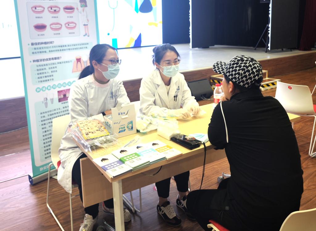 2023年11月17日下午,应东方广播中心工会邀请,太阳集团官网社工部和护理部组织师生志愿者,赴“上海广播艺术中心“二楼沉浸式剧场,为其单位职工开展了”谢谢你的爱“口腔义诊咨询活动。太阳集团官网医护志愿者就不同年龄段人群护齿要点,正畸、种植、儿童、牙周、口外等学科常规就诊指南,以及口腔保健误区困扰等问题进行了现场解答,并为在场群众进行了口腔检查,给出了个性化诊疗建议。现场气氛十分热烈,受到群众的一致好评。