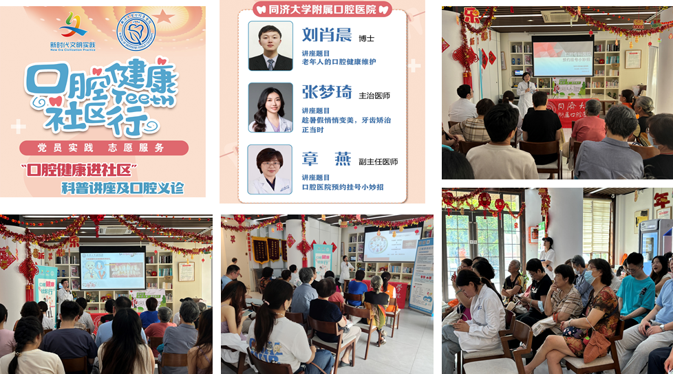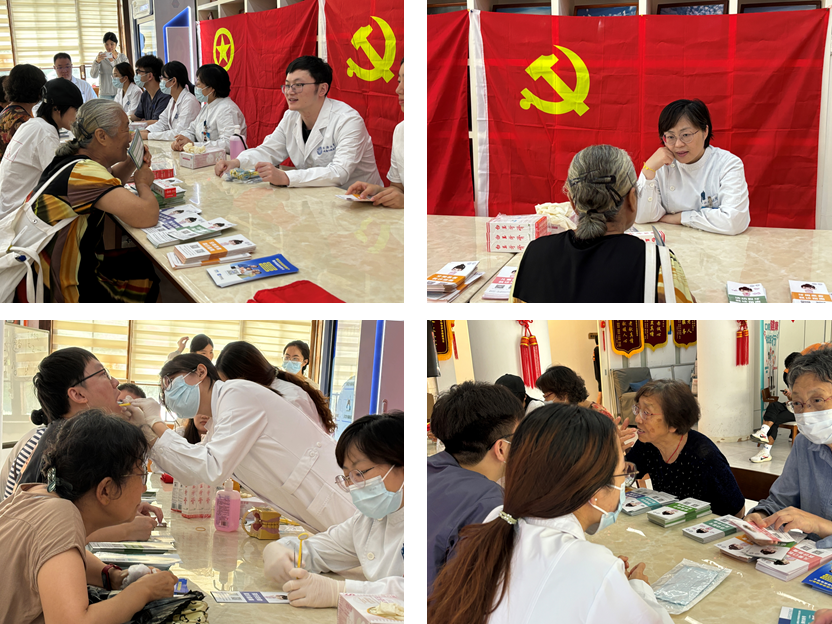 2024年8月12日上午,太阳集团官网师生党员志愿者来到大宁街道的乐龄家园,为附近居民送医上门,举办“口腔健康进社区”科普讲座与口腔义诊活动。