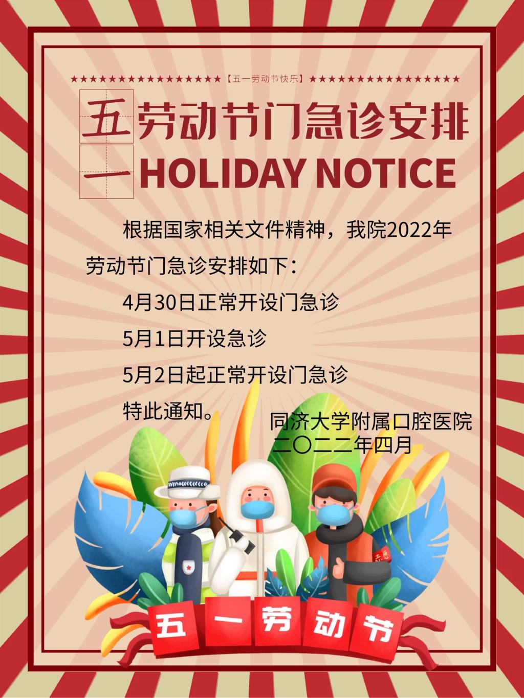 2022年五一劳动节门急诊安排
