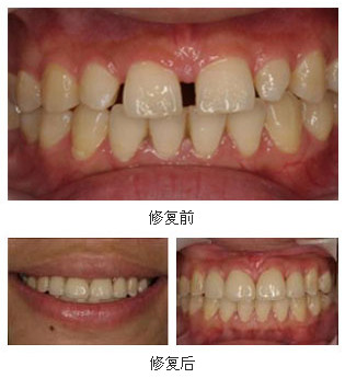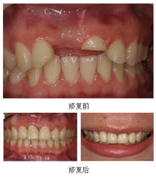 病例2 :外伤致上前牙缺失、缺损,种植牙修复