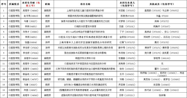 4.近年来suncitygroup太阳集团官方网站口腔医学院SITP立项一览表 (注:单击图片可放大浏览)