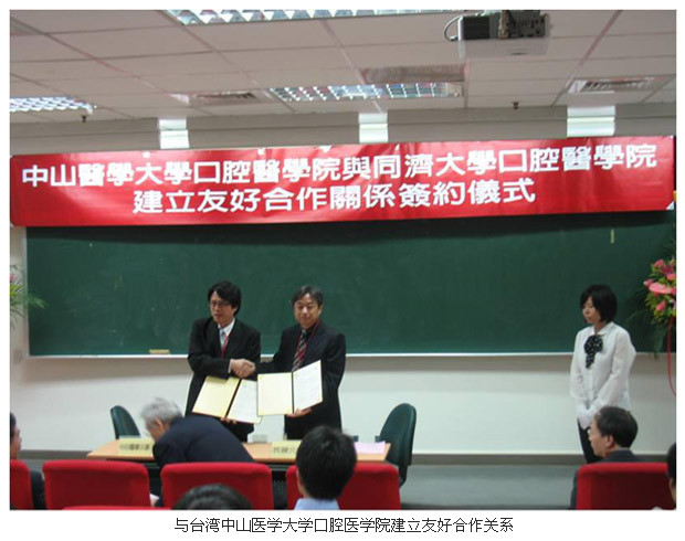 学院积极开展对外合作与交流,先后与日本、美国、德国以及我国港澳台地区的近十家口腔医学院(系)建立了友好合作关系。并邀请国际著名学者来院讲学和开展合作研究,同时也选派优秀的中青年骨干教师、优秀研究生及本科生赴国外学习和研修,资助学术骨干参加各种国际学术会议。